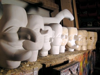 These are hand carved using well seasoned ’Lime’ wood from Minchinhampton in Gloucestershire. ‘Noses and Chins’ are made from ‘Ash or Oak’ wood and pegged in.