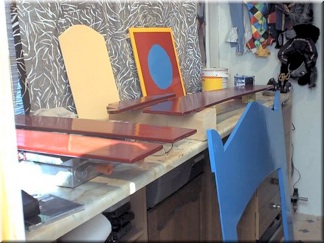I design show-front signs and proscenium arches which I ‘traditionally’ paint. I use good quality ‘Birch’ Plywood then trade paints are used as base coats. Getting a smooth surface on which to paint the design is essential. I mainly use One Shot Sign-writers Enamel for sign-writing work.